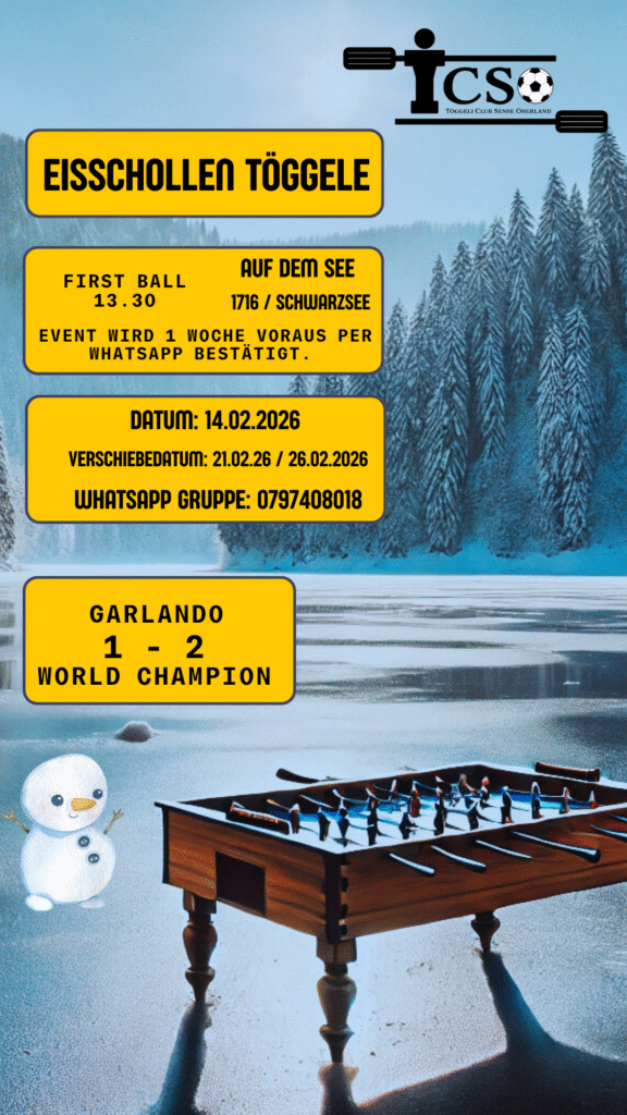 Stell dir vor: Der Schwarzsee liegt da wie eine spiegelglatte Mondoberfläche, das Eis knackt leise, die Kälte beisst, die Stimmung knistert. Und mitten drauf: Moonbots, die sich ins Töggei stürzen, als gäbe es keinen Morgen mehr. Die Welt hat noch nie etwas Vergleichbares gesehen, und wir sind uns sicher: danach wird sie auch nicht mehr dieselbe sein. Da der Event crasy ist wird entsprechend der Spielstatus auch Crasy Dipp sein.